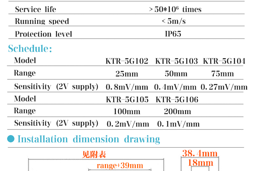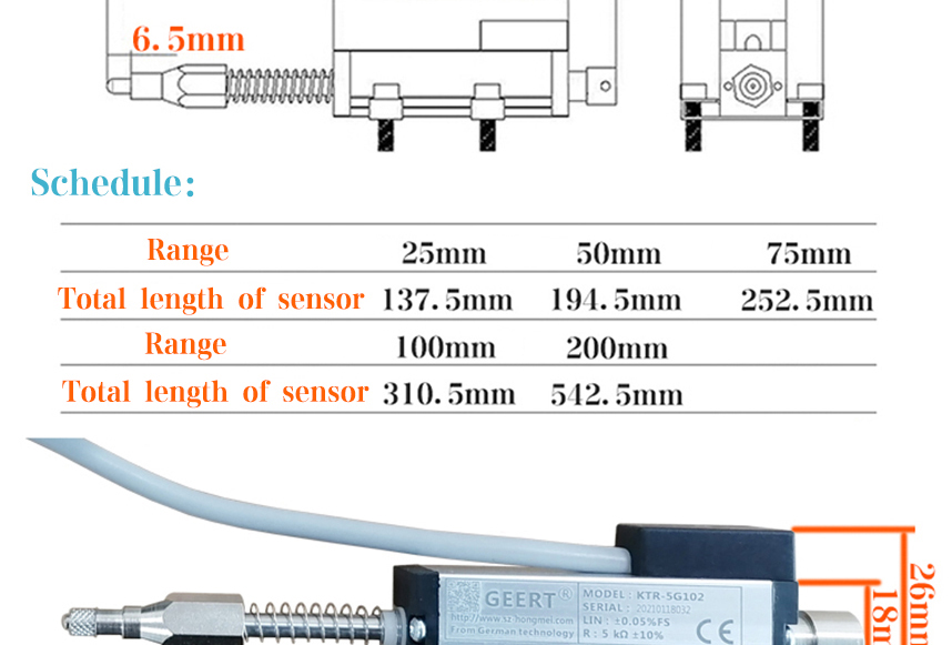 KTF slide type linear displacement sensor